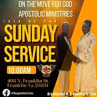 The beginning of "On The Move For God Apostolic Ministries" 200 West Jackson St. Franklin Va. 23851